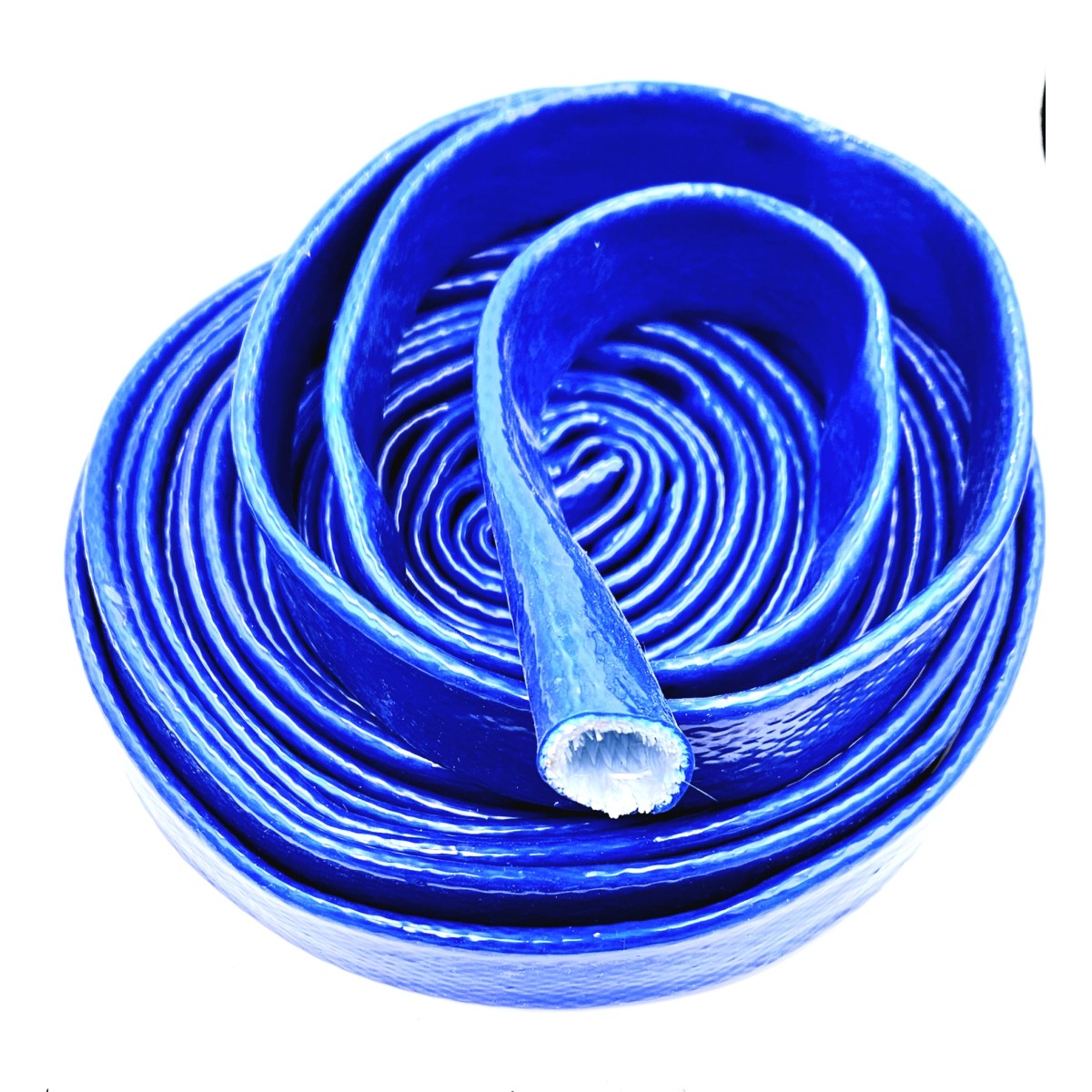 Voici notre gamme de gaine de protection anti-feu silicone bleu en fibre de verre.